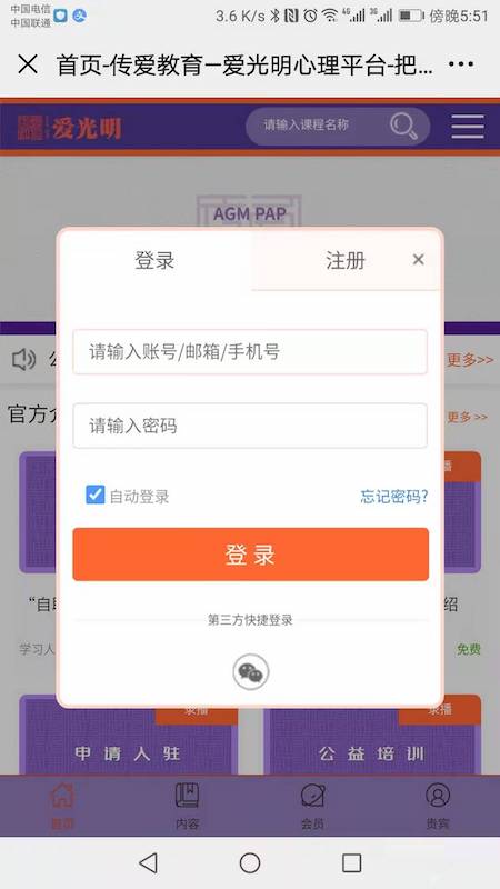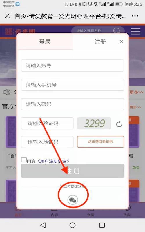 (建议在首次注册时,采用第三方快捷登录,或者及时绑定,方便后期快捷用微信登录和微信支付,以免以后选择微信支付时,出现报错现象)
