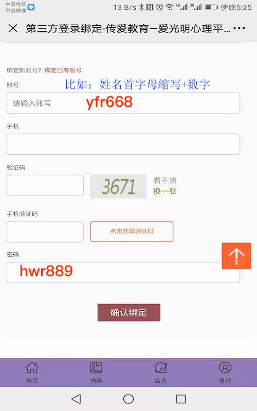 如果在本平台已经有账户,请点击"绑定已有账号”,填写注册过的手机号和密码,然后“确认绑定”